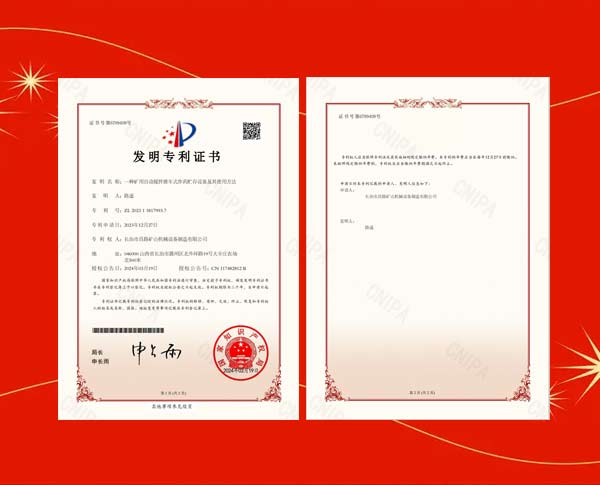 榮獲礦用裝藥器專(zhuān)利證書(shū)