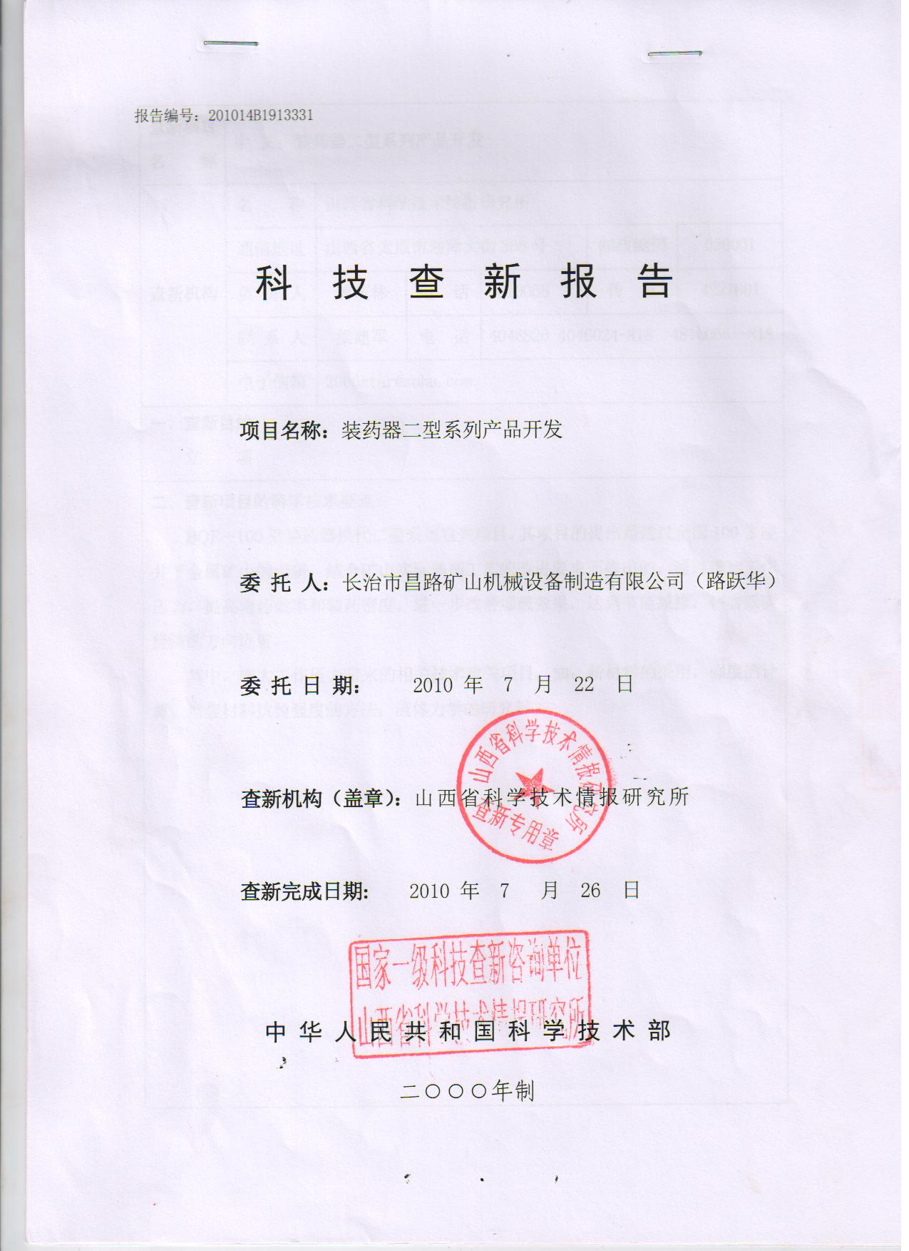 裝藥器二型開發(fā)科技查詢報(bào)告 國家一級(jí)科技單位